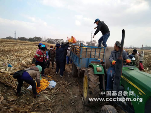 这就是爱的缘故,因为有神的爱,我们所付出的不会要求回报,也不会等价交换,因为有神的爱,上班的同工会跟单位请假、经商的同工才会把店门关上放弃今天的利润;因为有神的爱,不会掰苞米的同工今天也学会了农活;因为有神的爱,夫妻、姐弟、孕妇、老人才会同进收割的禾场。