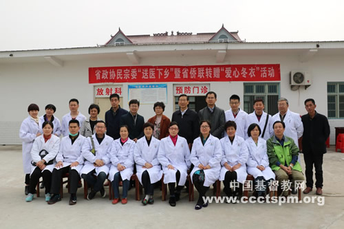 应安徽省政协民宗委邀请并由民宗委主任张武扬率队前往,合肥市基督教堂路加爱心医疗队在省政协民宗委副主任、安徽省基督教协会会长、合肥市基督教堂堂务主任薛连喜牧师和队长李梅医生的带领下于2017年11月10日赴淮南寿县陶店民族乡进行义诊。路加爱心医疗队十余位医生在陶店少数民族乡卫生院为百余位乡民进行了免费的体检并为其捐赠了近7000元的药品。