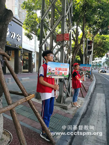 2017年7月27号,福建省厦门市同安区基督教两会恩光志愿服务队一行8人,参加由同安区文明办组织的交通文明劝导活动,帮助广大群众向不文明交通行为说“不”。