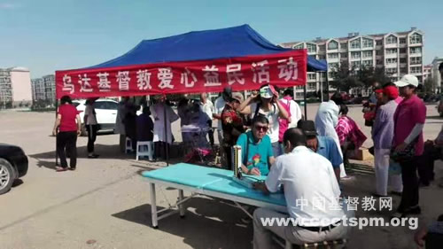 2017年8月5日,内蒙古自治区乌海市乌达区基督教会为遵行基督教导作光作盐,组织了4位基督徒理发师、2位基督徒医师以及多位辅助同工,在乌达区菜市场大门外的空地上举办公益活动。