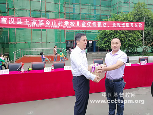启动仪式由达州市民宗局副局长孙小雁主持,宣汉县政府副县长万百勇致欢迎词并感谢中国基督教两会自2013年以来,连续5年在宣汉县渡口、三墩等土家族乡中心小学校开展留守小学生关爱、资助贫困留守学生、青少年疾病预防、急救知识培训、为贫困村民义诊等活动。由于这些民族乡位于大巴山腹地、路途遥远,留守儿童、青少年、老人较多,留守孩子们的心里疾病与留守老人的身体疾病给当地政府扶贫攻坚带来困惑,中国基督教两会与四川省基督教两会、达州市基督教会秉承雪中送炭、彰显爱心、荣神益人的传统,坚持扶贫与先扶智、促健康的行动参与慈善活动,令广大干部群众感动,体现了民族一家亲的温暖,表示真诚感谢与衷心欢迎!